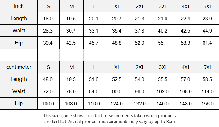 | centimeter | S | M | L | XL | 2XL | 3XL | 4XL | 5XL |